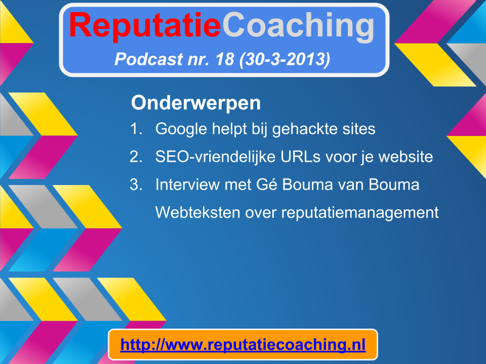 Het eerste nieuws vandaag is over Google, daar heb ik maar liefst drie nieuwtjes over. En nog net voor ik overga op het eerste interview in de geschiedenis van de ReputatieCoaching Podcast, heb ik tips en instructies voor je, voor het kiezen van een SEO-vriendelijke URL-structuur voor je website. Dat is een hele mond vol en als je nog geen idee hebt, wat dat betekent, dan begrijp je dat straks wel na mijn uitleg.