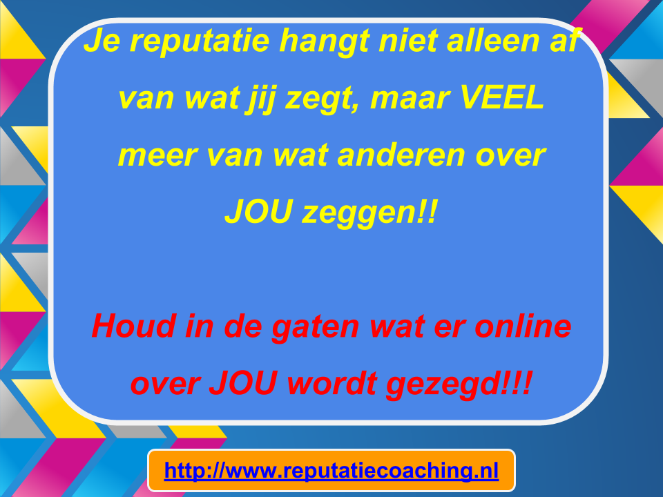 Ik wens iedereen de komende week weer succes met het werken aan je reputatie, zodat je meteen je reputatie voor jou kunt laten werken!