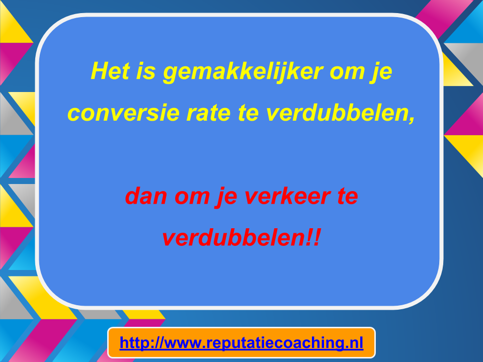 Ik wens iedereen de komende week weer succes met het werken aan je reputatie, zodat je meteen je reputatie voor jou kunt laten werken!