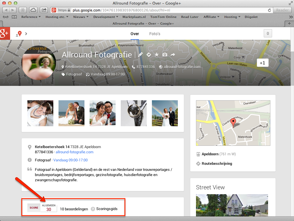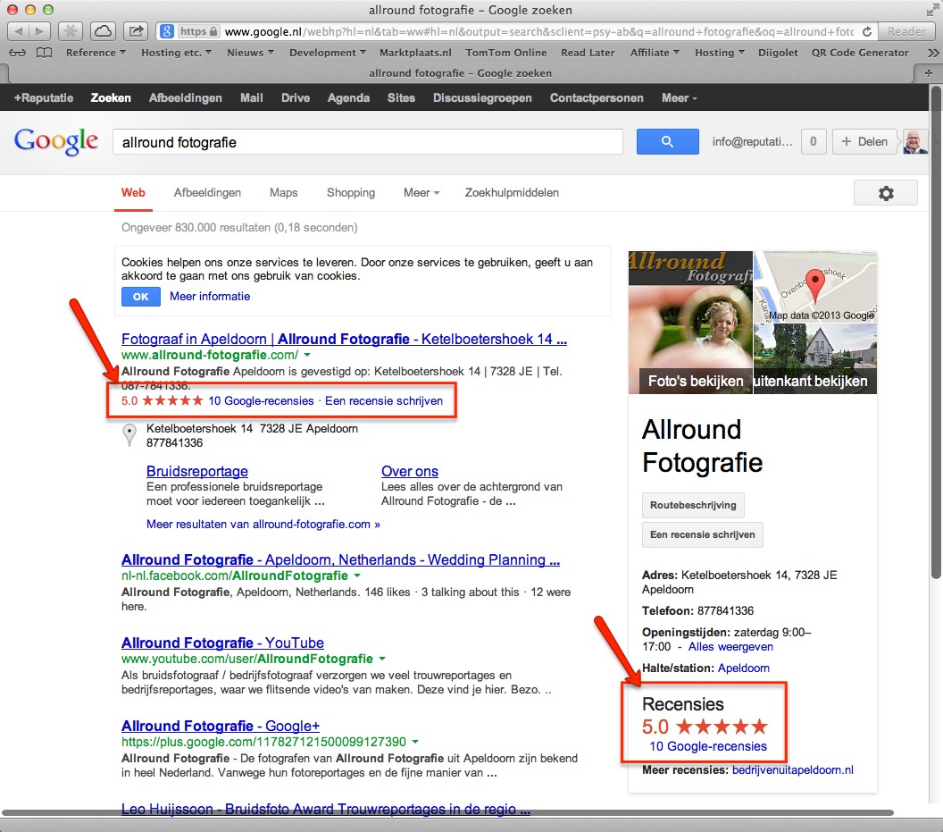 Maar binnenkort gooit Google het roer weer om en komen de sterretjes terug. Alleen zijn het geen gele sterretjes, maar zijn het rode sterretjes. Deze sterren komen dus zowel terug in de lokale zoekresultaten, als op de Google+ Lokaal vermelding van een bedrijf. Ook hiervan heb ik op de website voorbeelden opgenomen: