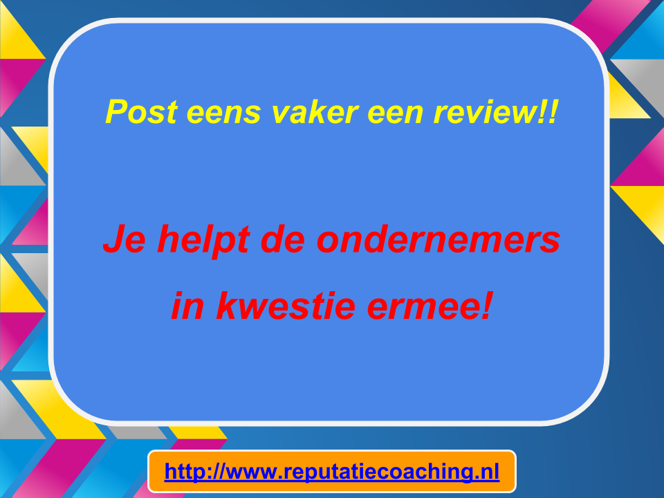 Ik wens iedereen de komende week weer succes met het werken aan je reputatie, zodat je meteen je reputatie voor jou kunt laten werken!