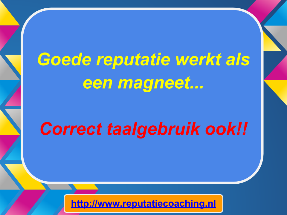 Toen ik verder ging zoeken naar een mogelijke relatie tussen correcte spelling of juist taalgebruik en reputatie stuitte ik op een artikel uit het Reformatorisch Dagblad van 17 oktober 2012. De titel van dit artikel luidde “Weren grove taal heeft positieve invloed op reputatie organisatie” en het artikel sluit af met de volgende tekst: