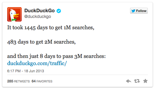 DuckDuckGo naar 3 miljoen in 8 dagen