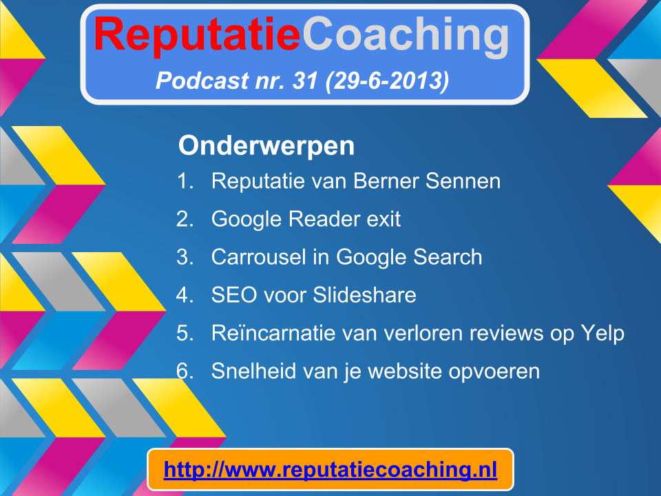 31: Reputatie Berner Sennen, einde Google Reader, SEO voor Slideshare, ranking in Bing en Yelp reviews