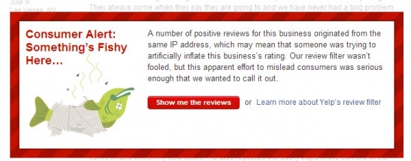 De software achter het Yelp review-filter ziet dit en verplaatst dit soort reviews naar een aparte pagina, die je dus niet zomaar kunt benaderen. Daarvoor moet je eerst een “captcha” intypen, om die te kunnen zien.