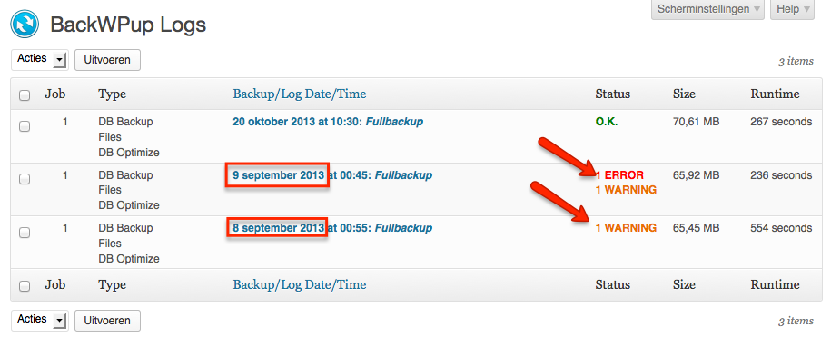 Hierdoor wordt het opeens nóg belangrijker om backups voor je site goed in te regelen. En ik zal je wat vertellen: ik kwam erachter dat de backup van ReputatieCoaching.nl niet goed werkte, toen ik weer eens in de log files dook. Het bleek dat BackWPup teveel geheugen vroeg, om de backup goed te kunnen uitvoeren en dat er sinds 9 september geen goede backups meer waren gemaakt! Gelukkig is er niets gebeurd in de tussentijd, maar anders had ik toch wel echt een probleem gehad!